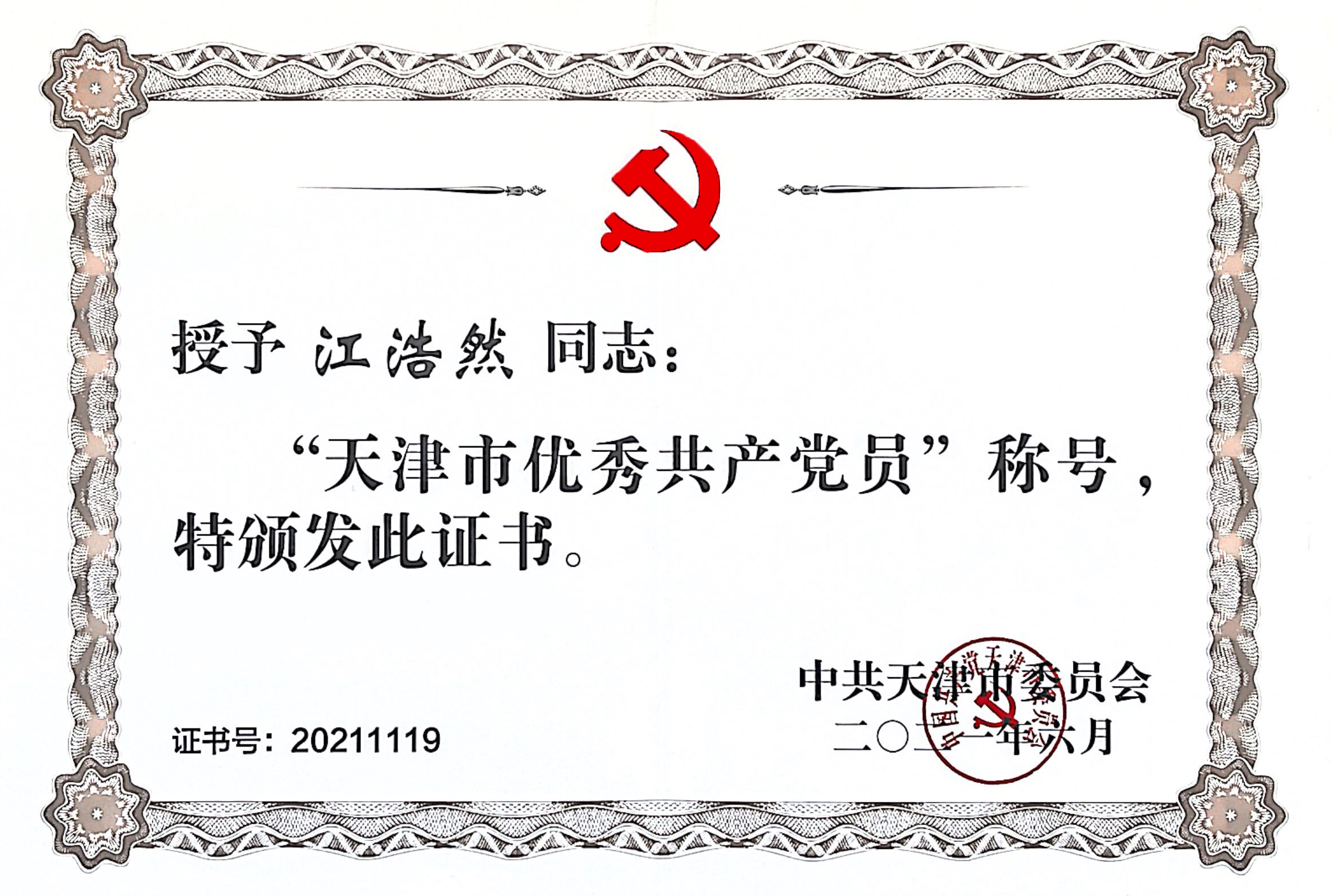 NG28娱乐科技党委书记、董事长江浩然荣获天津市优秀共产党员称号