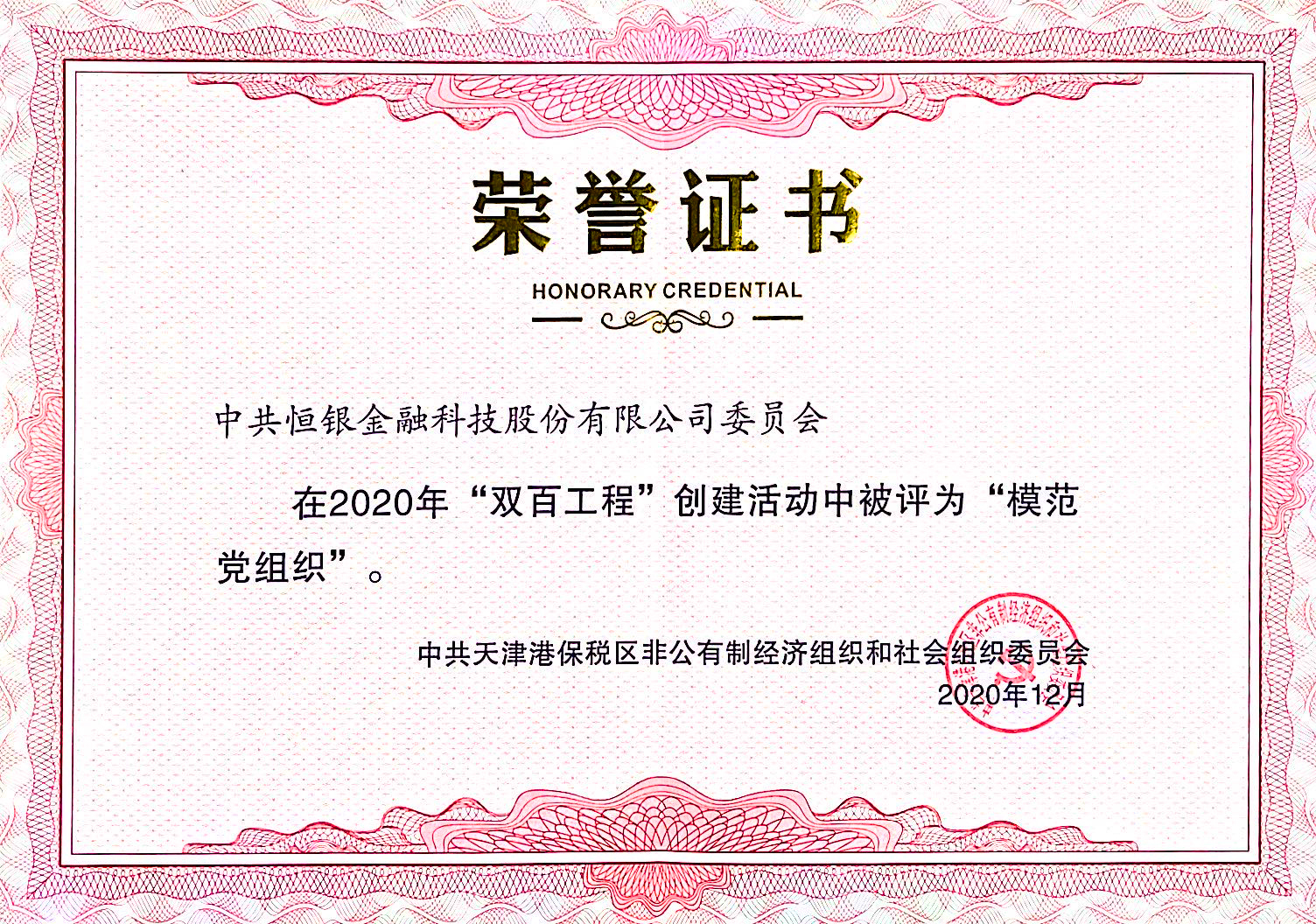 中共NG28娱乐金融科技股份有限公司委员会获评天津港保税区“2020年双百工程模范党组织”