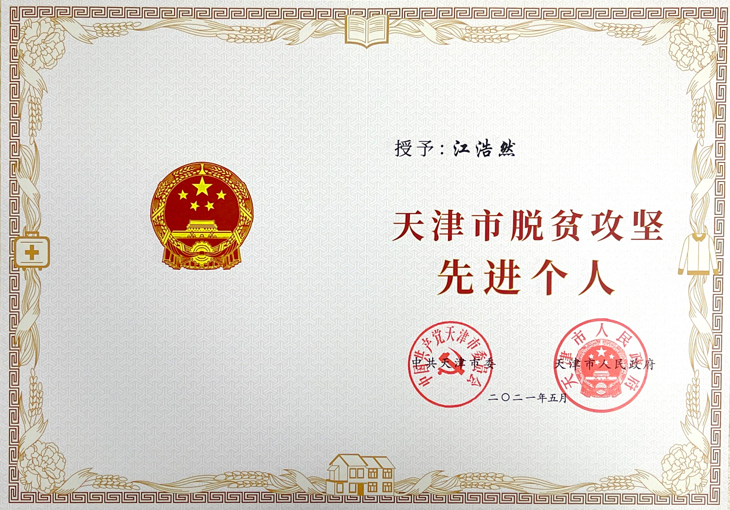 NG28娱乐科技党委书记、董事长江浩然荣获“天津市脱贫攻坚先进个人”称号